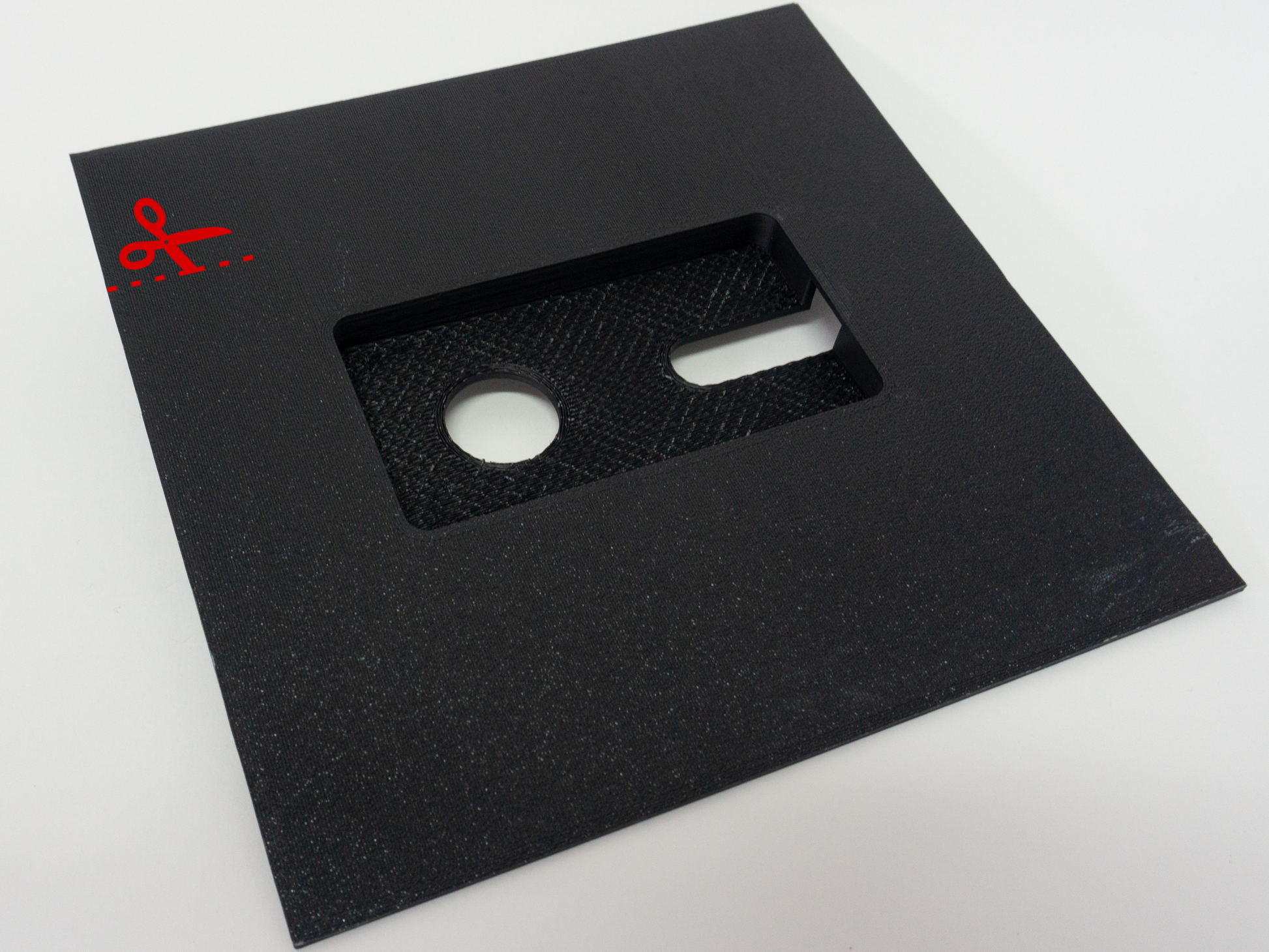 Solid ASA plate with a 200 mm x 200 mm size and 2 mm thickness, designed for custom installation of AirLift Performance 3P controllers. It includes a cavity that fits the controller securely and can be trimmed or shaped as needed.